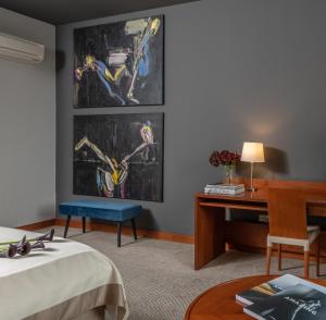 Art Hotel prezentuje stałą wystawę czeskiej sztuki nowoczesnej autorstwa m.in. Jana Kotíka oraz eksponuje oryginalne dzieła artystyczne także we wnętrzach pokoi gościnnych. Obiekt dysponuje windą umożliwiającą wygodne dotarcie na wyższe piętra, codzienną usługą sprzątania, pomocą konsjerża, barem serwującym napoje na miejscu oraz możliwością dostarczenia posiłków bezpośrednio do pokojów. Dla wygody podróżujących organizowany jest transfer lotniskowy. W przestrzeniach wspólnych rozmieszczono dozowniki środków dezynfekcyjnych dla zachowania higieny bezpieczeństwa, a wszystkie pokoje wyposażono w czujniki dymu. Na terenie posesji znajduje się ogród otwarty dla gości oraz plac zabaw przystosowany dla dzieci.