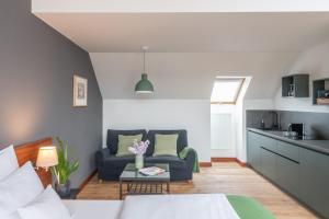 W hotelu znajdują się pokoje oferujące głównie widoki na Pragę, a niektóre z nich zapewniają również panoramę Zamku Praskiego lub ogrodu. Goście mogą wybierać spośród pokoi dwuosobowych z dużymi łóżkami wychodzącymi na tereny zielone lub ciche uliczki, romantycznych apartamentów wyposażonych w wolnostojące wanny i tarasy z hamakami oraz apartamentów ze aneksami kuchennymi i małymi tarasami. Każdy pokój klimatyzowany jest za pomocą indywidualnie regulowanego systemu i posiada prywatną łazienkę z wanną lub prysznicem, telewizor LCD ze stacjami satelitarnymi, ekspres do kawy i herbaty, lodówkę oraz sejf na wartościowe przedmioty. Do dyspozycji gości są również biurka oraz tam gdzie to możliwe rozkładane sofy, dostępne są poduszki antyalergiczne na życzenie, w łazienkach znajdują się kapcie, system grzewczy gwarantuje komfort podczas chłodniejszych miesięcy, hotel oferuje opcje przyjazne alergikom oraz bezpłatny dostęp do Wi-Fi we wszystkich pomieszczeniach.