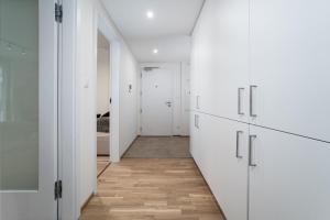 The apartment includes two bathrooms equipped with baths and free toiletries. Guests can prepare meals in the fully equipped kitchen that contains a stovetop, oven, dishwasher, refrigerator, coffee machine, and full kitchenware. The living area provides a flat-screen TV and seating space for relaxation or dining. Additional amenities include a washing machine and both feather and non-feather pillows.