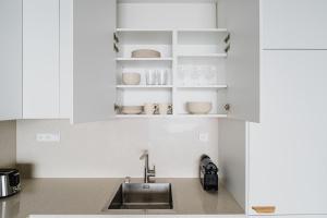 Das Apartment ist mit einer voll ausgestatteten Küche ausgestattet, die unter anderem einen Geschirrspüler, Backofen, Mikrowelle sowie Kochutensilien umfasst. Der Wohnbereich verfügt über Kabelfernsehen und Heizung für zusätzlichen Komfort. Eine Waschmaschine steht zur Verfügung, im Badezimmer sind kostenfreie Pflegeprodukte und ein Haartrockner vorhanden. Bettwäsche und Handtücher werden bereitgestellt.