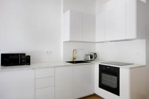Das Apartment mit einem Schlafzimmer befindet sich im historischen Viertel Vršovice, Prag 10. Es verfügt über eine großzügige private Terrasse mit Blick auf den Innenhof und liegt etwas mehr als 5 Kilometer von Sehenswürdigkeiten wie der Vyšehrad-Burg und der Karlsbrücke entfernt.