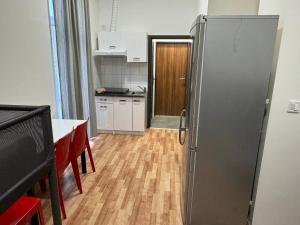 Clean, cozy apartment with 4 beds, private bathroom, induction stove, big fridge and freezer, washing machine and a big dinner table with 4 chairs. The kitchen had an electric stove but did not work properly. The location was close to the Invalidovna subway station and tram stops with attractions like Zodiac Patres escape room and Prague Zoo nearby. Self-check-in was done using a key safe box.