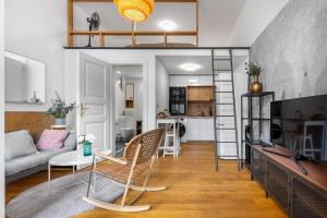 Each unit includes a private entrance and parquet floors, with layouts ranging from studios to spacious apartments containing one or two bedrooms plus a living room. Kitchens are fully equipped with stovetops, refrigerators, dishwashers, kitchenware, and coffee machines to support self-catering. Seating areas feature flat-screen TVs and dining spaces, while bathrooms include showers or bathtubs along with hairdryers. Additional conveniences such as washing machines and tumble dryers are available within units.
