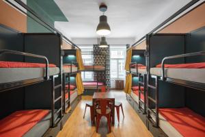 Guests can enjoy communal spaces such as a fully-equipped kitchen for self-catering needs or unwind on the garden’s sun terrace furnished with outdoor furniture around a fire pit. The hostel also provides board games and puzzles in its recreational area where evening activities take place. Additional services include dry cleaning, concierge assistance, smoke detectors inside rooms for safety, protective face masks available on-site, secure storage options including lockable lockers throughout the property as well as free coffee and tea daily.