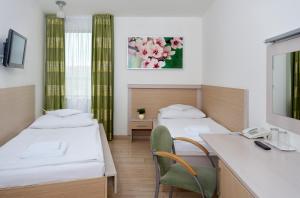 The accommodation includes air-conditioned rooms with soundproof walls and central heating. Each room features medical mattresses with anti-allergy bed linens, a minibar, and an LCD satellite TV. Private bathrooms come equipped with either a shower or bathtub, a toilet, large mirror, hairdryer, and complimentary toiletries. Guests can store belongings in wardrobes or closets, safes are provided for valuables.
