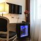 The hotel offers air-conditioned rooms equipped with satellite TV, minibars, and free Wi-Fi. Each room includes a private bathroom with either a shower or bathtub, toiletries, and some feature both shower and bathtub options. Guests can find extra-long beds, laptop-size safes, desks, sofas in the seating area, and city or inner courtyard views. Soundproof rooms are available alongside accommodations with hypoallergenic and non-feather pillows as well as cribs for infants.