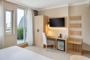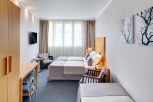 Freundliches Personal sprach gut Englisch und überraschte an der Rezeption mit kleinen Weihnachtsgeschenken und Glühwein. Das Frühstück war sehr reichhaltig und wurde lange angeboten. Die Zimmer waren sauber, gemütlich und einfach eingerichtet, aber es fehlte an nichts. Tägliche Reinigung und frische Handtücher gehörten zum Service dazu. Die Lage war top, in einer ruhigen Gegend nur 10 bis 15 Minuten zu Fuß zur Altstadt und zum Palladium Einkaufszentrum.