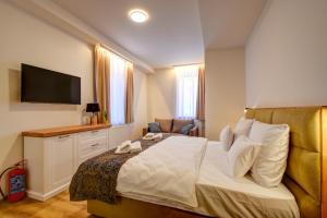 The hotel offers air-conditioned accommodations ranging from studios to suites, all equipped with soundproof walls, flat-screen TVs, tea and coffee makers, wardrobes, and private bathrooms stocked with free toiletries. Some rooms include kitchenettes fitted with stovetops, refrigerators, and kitchenware for self-catering options. Seating areas are provided in larger units along with sofa beds where applicable. A few rooms have balconies offering city views.