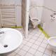 The guest house provides various room types including apartments with one or two bedrooms accommodating from one to four guests. Apartments feature fully equipped kitchens with appliances such as refrigerators, stovetops, microwaves, coffee makers, electric kettles, dishwashers, and kitchenware. Some units include air conditioning and balconies. Living areas include dining rooms with sofa beds and wardrobes for storage. Bathrooms come with showers or bathtubs plus hairdryers, some bathrooms are private while others are shared.