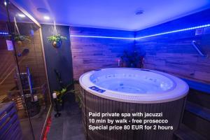 The property provides wellness facilities including a private sauna within the room and access to a spa area featuring a Jacuzzi hot tub. A continental breakfast is available offering fresh pastries and fruits along with chocolates provided in the apartment. Additional conveniences include an electric car charging station on site as well as cycling and hiking activities nearby.