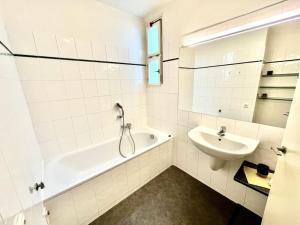 The spacious one-bedroom apartment includes a fully equipped kitchen with a dishwasher, oven, and washing machine for self-catering needs. Guests can relax on the sofa or enjoy cable channels on the flat-screen TV in the seating area. The bathroom features a bathtub or shower along with shampoo and a hairdryer.