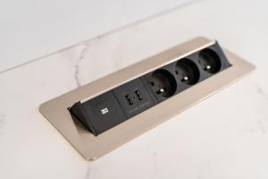 This apartment includes two bedrooms and a living room furnished with a sofa bed, accommodating up to five guests. The fully equipped kitchen features a stovetop, oven, microwave, dishwasher, refrigerator, coffee machine, and all necessary kitchenware. Two bathrooms each contain a shower along with toiletries like soap, shampoo, and a hairdryer. Guests can enjoy streaming services on the flat-screen TV or make use of the washing machine and drying rack.