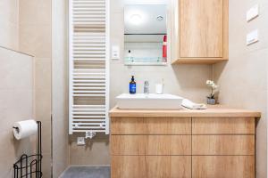 W salonie znajduje się telewizor z płaskim ekranem oraz dostępem do serwisów streamingowych, a przestrzeń wypoczynkowa jest oddzielona od części sypialnej. Kuchnia wyposażona jest we wszystkie niezbędne sprzęty: piekarnik, płytę grzewczą, zmywarkę, lodówkę, naczynia kuchenne oraz ekspres do kawy i herbaty. Łazienka posiada wannę oraz bezpłatne kosmetyki i suszarkę do włosów. Dodatkowo apartament jest ogrzewany i wyposażony w pralkę.