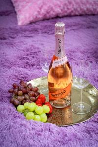 The apartment features a living room, two bathrooms equipped with bathtubs, and soundproof walls ensuring privacy. The kitchen includes a stovetop, refrigerator, dishwasher, and all necessary kitchenware for meal preparation. Guests benefit from air conditioning and heating throughout the unit, alongside amenities such as a washing machine, minibar, tea and coffee maker.