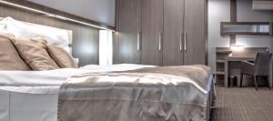 All air-conditioned rooms include flat-screen satellite TV, a work desk with chair, laptop-sized safe, minibar, built-in wardrobe, and private bathrooms equipped with showers and hairdryers. Family rooms are available along with non-smoking options. The sleeping areas have carpeted floors and feature views of the surroundings. An elevator provides access to upper floors.